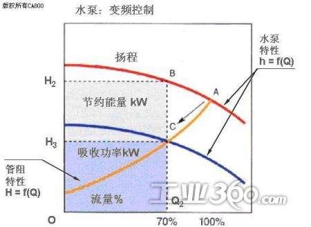 ②由于某些大型循環(huán)水泵的規(guī)劃參數(shù)而被適應(yīng)于某些循環(huán)水泵系統(tǒng),即所謂的“大馬拉小車(chē)”,它在這種情況下具有一定的作用,依賴(lài)于泵的頻率來(lái)改變泵馬達(dá)的頻率降低泵的轉(zhuǎn)速,調(diào)整泵的Q和H值,并使泵的實(shí)際流量值低于泵的額外流量值,以達(dá)到節(jié)能的目的。